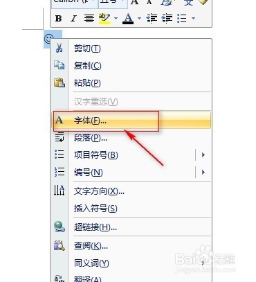 此时,你会在文档中看到一个小标志,也许你觉得这个标志看起来不像,选中图标,然后单击右键,在右键菜单中选择“字体”。