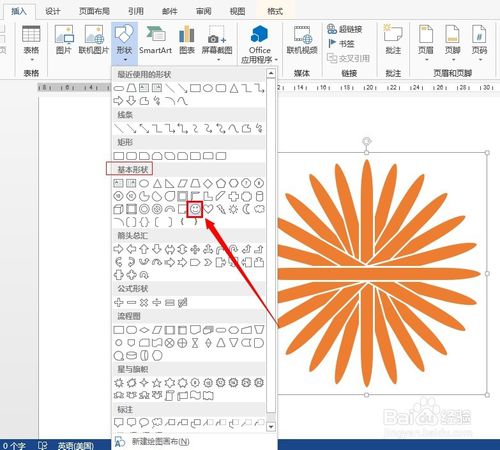 插入笑脸:插入→形状→基本图形→笑脸