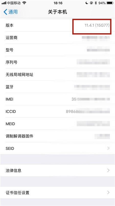 2、随后在 iPhone 摘要页面即可看到手机系统的版本号。同样地,在 iTunes 上显示的版本号与在手机上查看的版本号是一样的