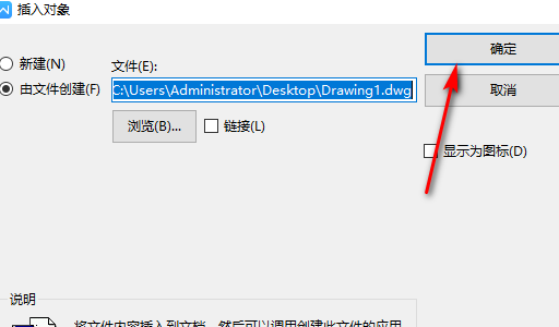 5、选择CAD文件后,点击插入对象页面右上角的确定。