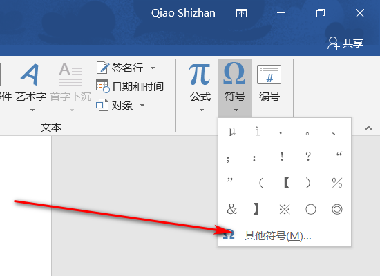 4、在随后弹出的菜单右侧点击“符号”按钮,随后选择“其它符号”。