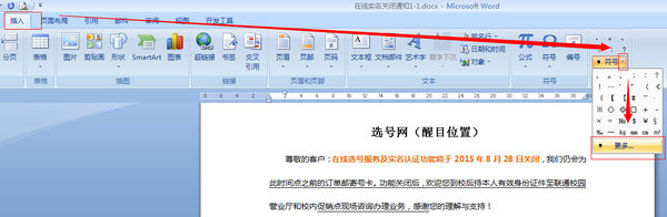 1.光标定位与要勾对号的位置——插入——符号下拉(更多),如图: