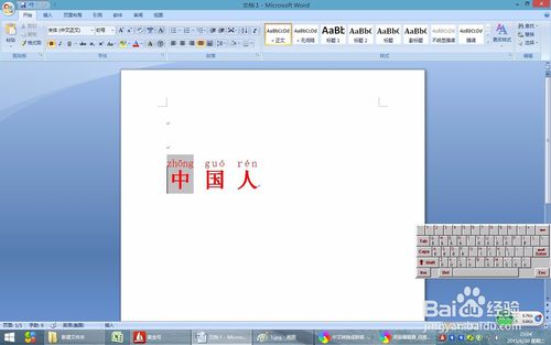 1、打开word2007,输入要添加拼音的汉字。
