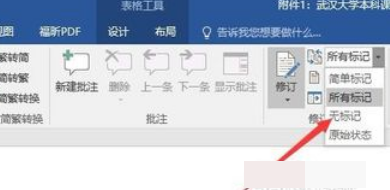 3、然后选择修订——所有标记,展开选项。