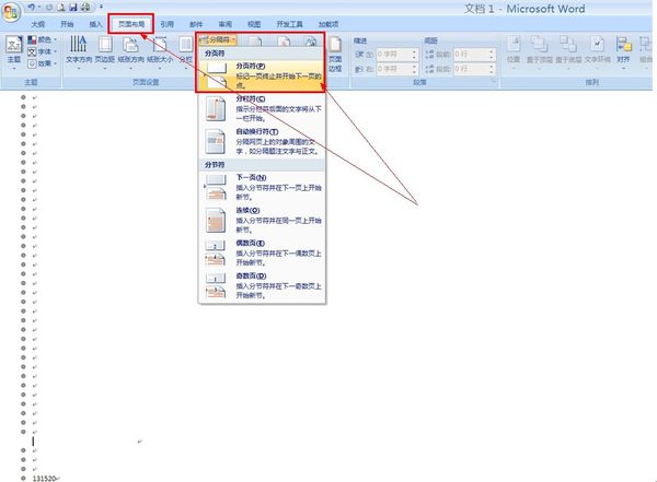 主要是使用了分隔符中的分页功能.