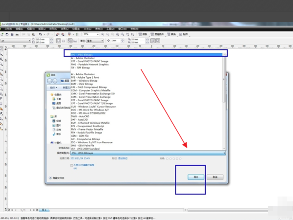 3、选择“导出”之后,就选择保存类型。点击JPG格式。选择“导出”。