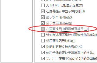 4、在“高级”的“显示”栏目下找到“在页面视图中显示垂直标尺”,并勾选。