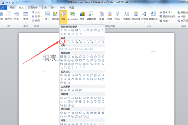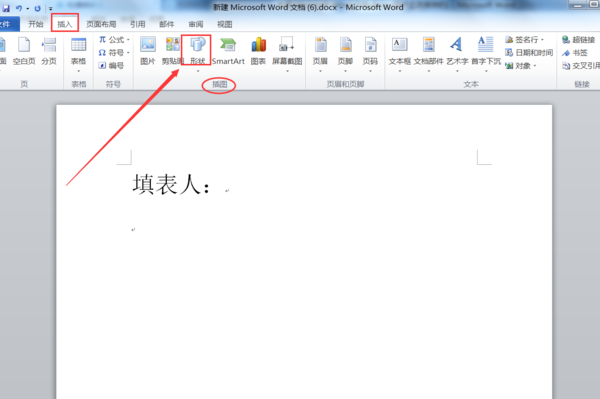 1、打开需要操作的WORD文档,在插入选项卡中找到插图一项,点击“形状”。