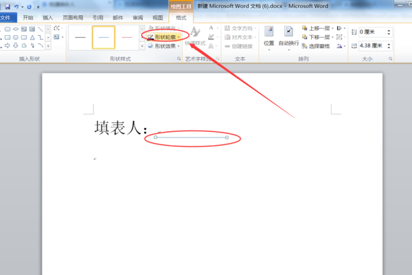 3、在主文档中,按住键盘“Shift”键,同时点击鼠标向右滑动鼠标即可画出横线,可在形状轮廓中改变横线样式。