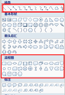 1、选择插入菜单——选择形状——选择制作流程图需要用到的形状图形。
