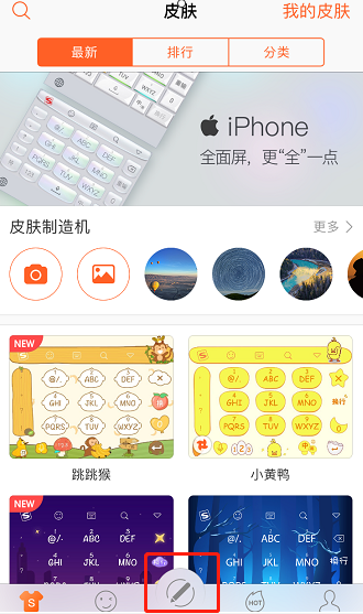 2、然后打开搜狗输入法app软件,在软件首页里点击下面最中间的输入按钮。
