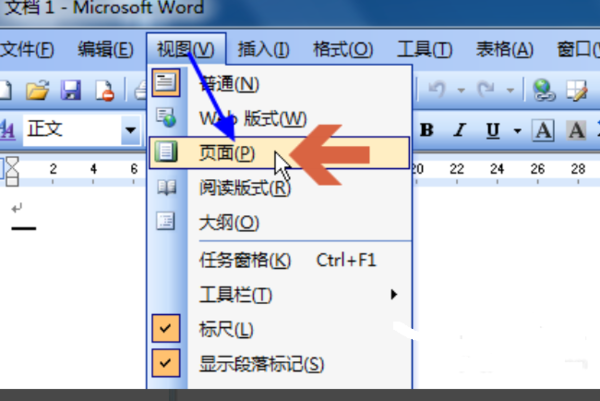 在Word中,有多种视图,一般最常用的是页面视图,将其它视图切换回页面视图的方法: