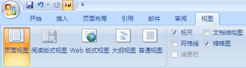 比如word2007 最上面就有 视图 这个选项 点开后 -----下面有 页面视图 阅读版式试图 web版式视图 大纲视图 和 普通试图 ,点击就可以切换视图版式