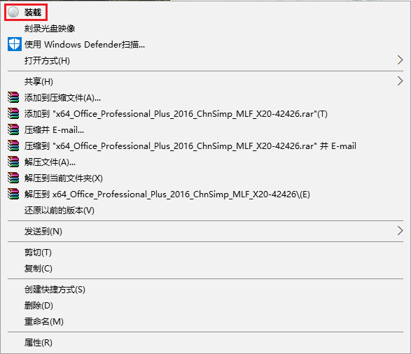 2、双击ISO安装包,或右键单击ISO安装包,点击“装载”。