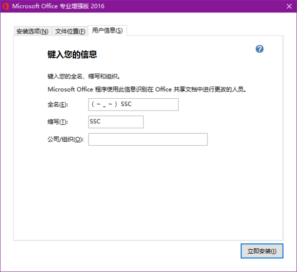 9、点击上方第三个“用户信息”标签,输入相关信息,“公司/组织”可留空。
