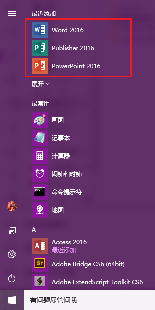 13、点击开始菜单,即可看到安装的office了。