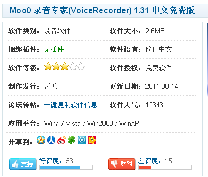 软件功能非常强大~!可以进行各种特效录音,混录,还可以进行变声、变调、变速等各种特效音频处理。是用过觉得最好用的录音软件!可以去下载试试~~