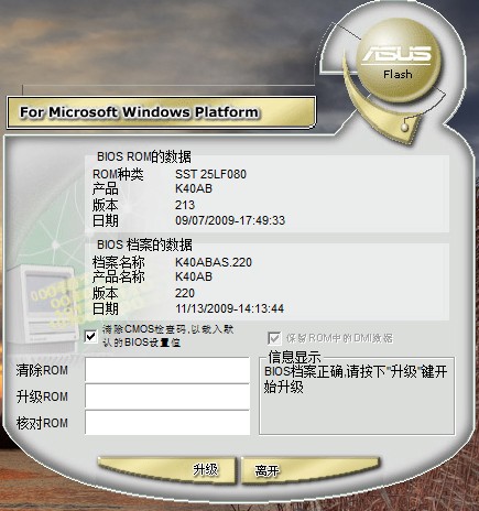 WinFlash下载华硕的BIOS升级软件,载入会自动识别版本的