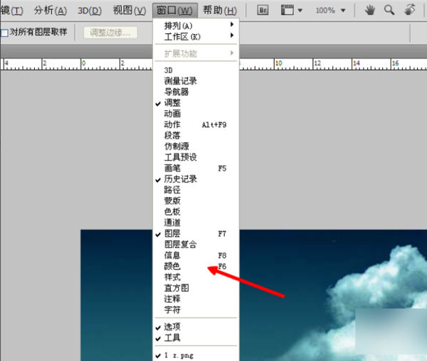 2、打开图片后,再点击“窗口”下拉菜单中的“颜色”选项。