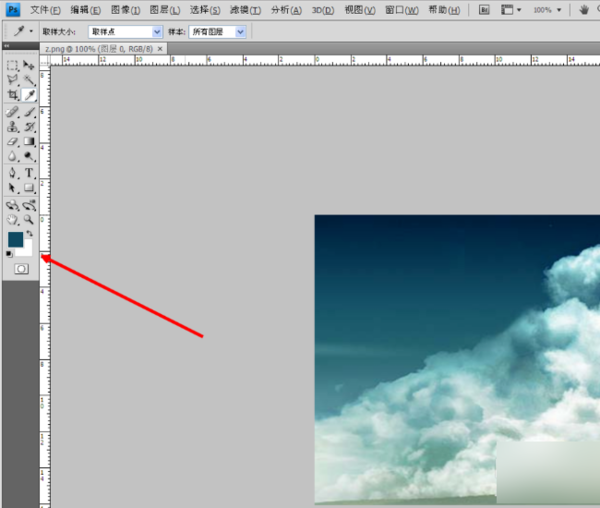 4、然后吸图片中的目标颜色位置,前景色就会变成吸住的颜色了。