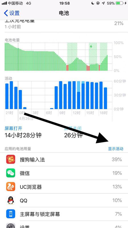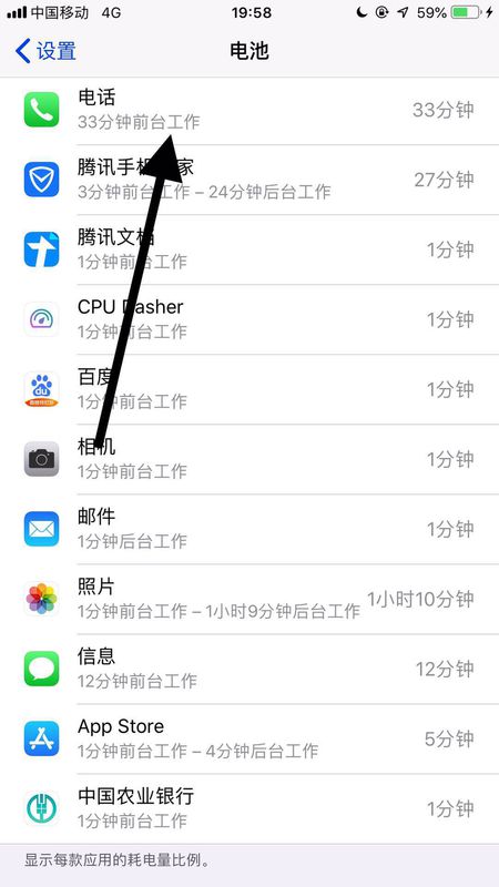 可以通过苹果手机设置界面中的电池,查看相关应用的使用时间。具体操作请参考以下内容。