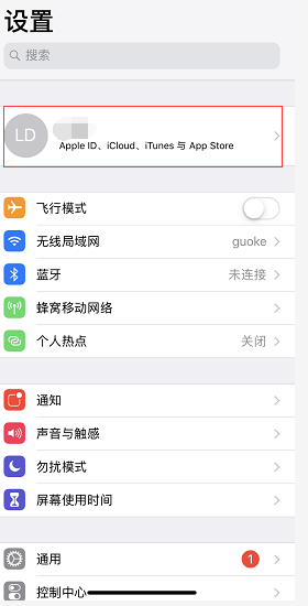 2、在手机桌面找到设置,进入设置页面后,点击其Apple ID账号。
