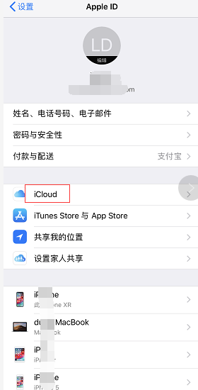 3、进入Apple ID页面后,找到“icloud",点击进入icloud页面。