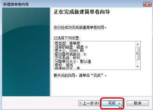 7.点击“完成”按钮,新建磁盘完成。