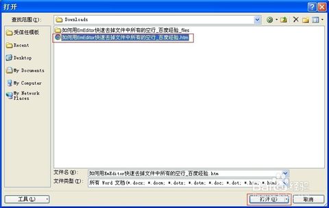 3、然后我们打开WORD,按ctrl+o,找到保存了网页HTML文件的文件夹,选中HTML文件,单击打开。