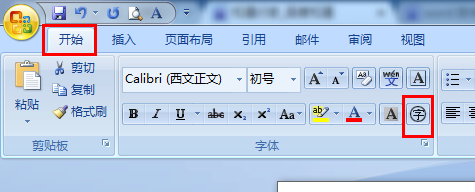 2、点击开始-》带圈字符。