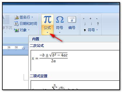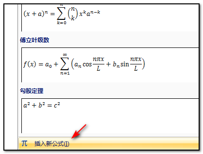 3、点击公式命令以后,在下拉选项中点击选择插入新公式的命令;