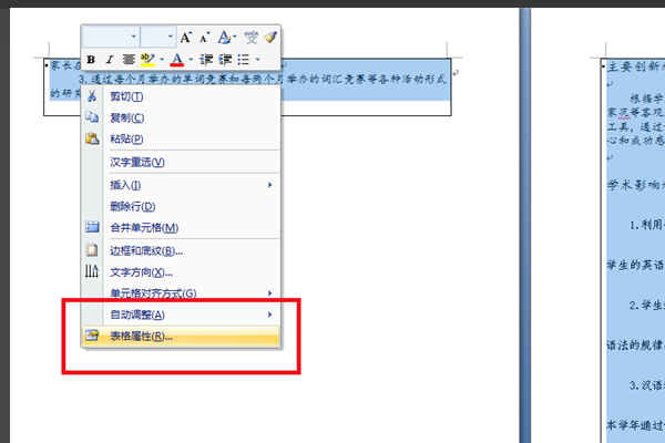 2、然后我们选中表格右键,在下拉菜单中选择“表格属性”。