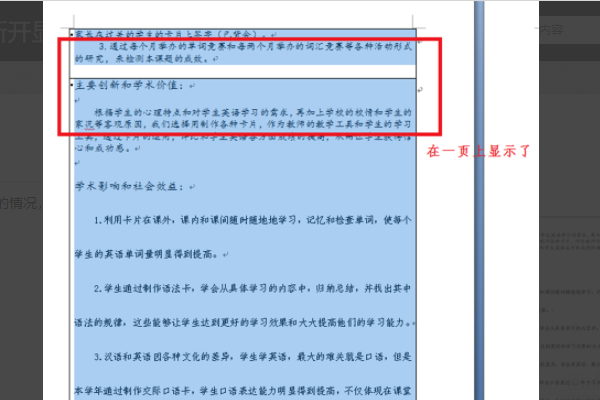 4、可以看到该段落显示在同一页上。