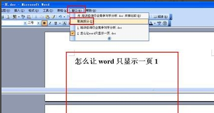 1.这种情况是由于word页面被拆分了,下面的一页是从拆分的地方开始的,取消方法很简单,点击菜单栏上的窗口菜单,在下拉中选择“取消拆分”就好了。