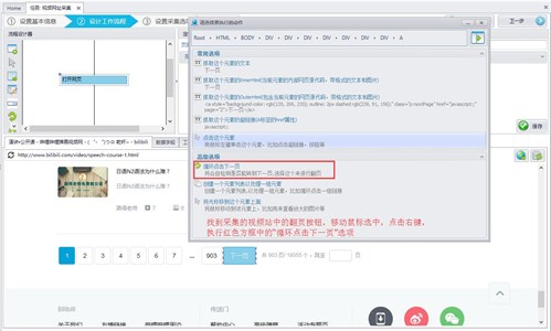 找到采集的视频站中的翻页按钮,移动鼠标选中,点击右键,