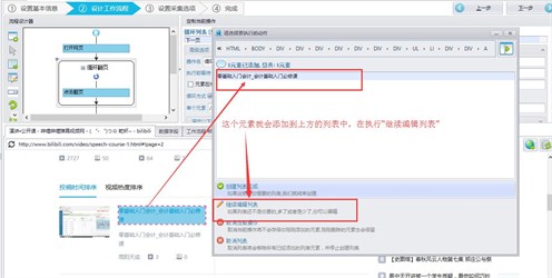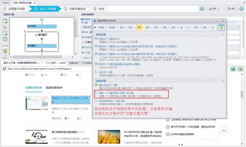 左上方的流程设计器会显示一个点击元素的循环框。完成循环点击列表的创建