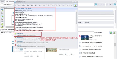 移动鼠标选中视频列表中的标题,点击鼠标右键,选择红色方框中的“创建元素列表”