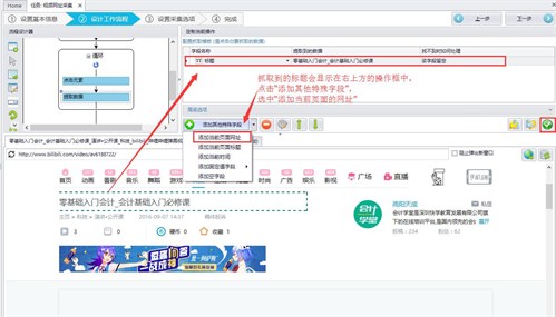抓取到的标题会显示在右上方的操作框中,点击“添加其他特殊字段”,选中“添加当前页面的网址”