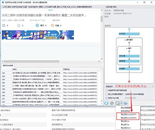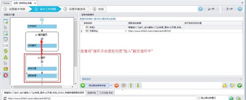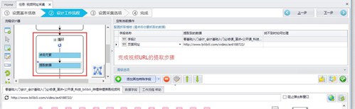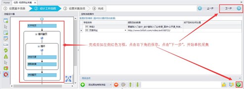 完成后的采集规则就如图中红色方框,点击右下方的保存后,就可以点击“下一步”,开始视频URL的采集