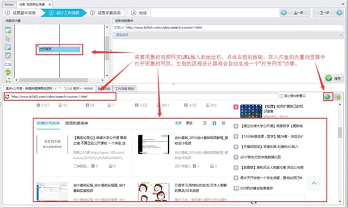 进入采集规则设置界面,将视频网站的URL输入到地址栏,如图点击右侧的按钮,