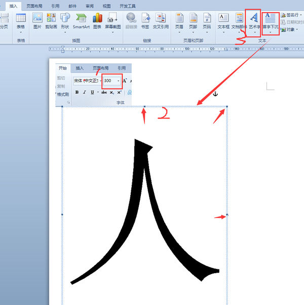 建立文本框(插入----------文本框---------横向),输入“1”,按住Ctrl+]组合键,直到字体大小达到自己满意的程度为止。