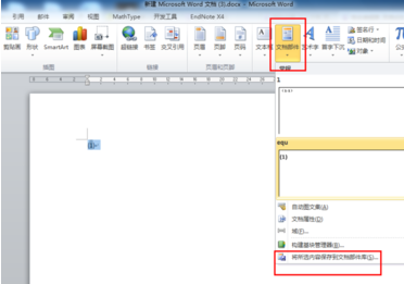 10、选中刚才生成的结果,包括小括号,然后选择“插入”-“文档部件”-“将所选内容保存到文档部件库”。