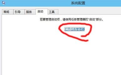 系统配置窗口,启动里面点击这里的任务管理器打开。