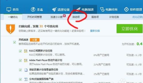 2.根据不用的软件,称呼可能有点出入一般是电脑加速,开机加速。
