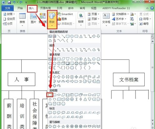 word2013中插入流程图的步骤如下: