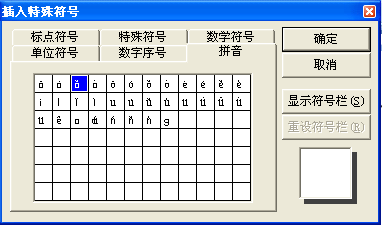 3、弹出插入特殊符号对话框,选择拼音选项卡,单击如图所示的符号即可。