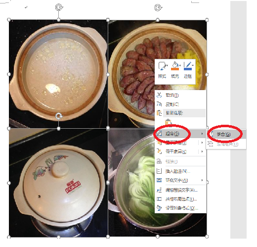 9、排版结束后,按ctrl键,鼠标点选4张图片,将四张都选中。