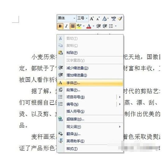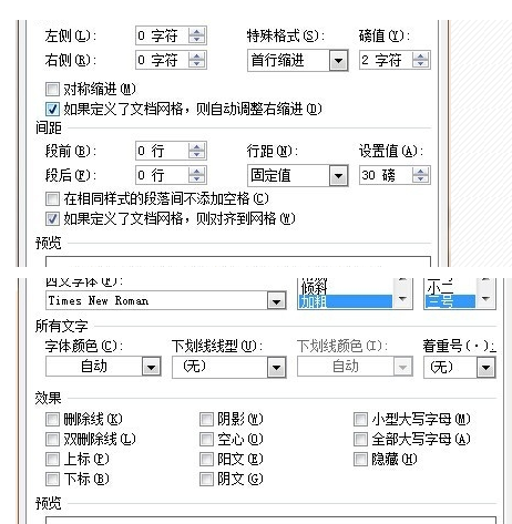 3.设置段落格式—特殊格式—首行缩进—2字符。设置正文字体和字号。