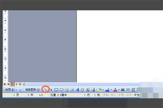 完成上面的步骤后,在word文档的左下角可以看见绘图选项的全部内容,点击那个右斜线“\ ”按钮标志。