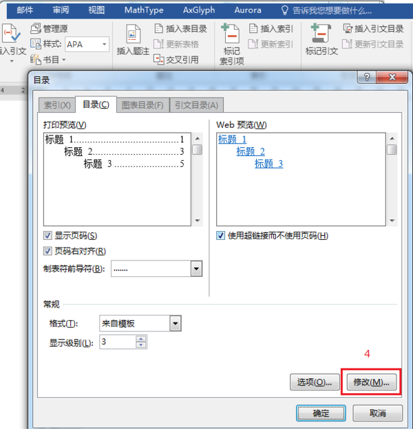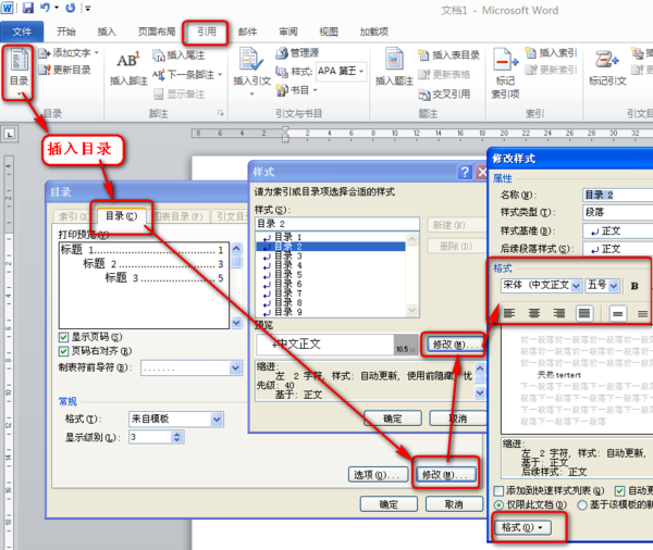 引用——目录——插入目录——修改